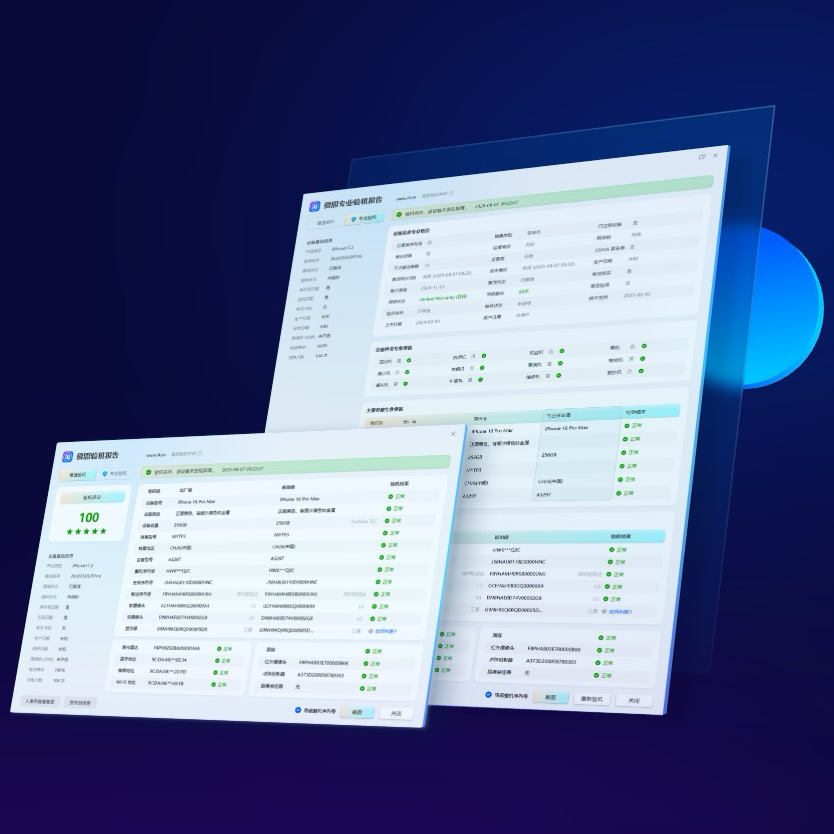 爱思助手搭载全新检测算法,从主板序列号到摄像头模组逐项核验,精准识别更换过零件或修改过数据的设备。验机结果可生成专属报告,方便分享与存档。